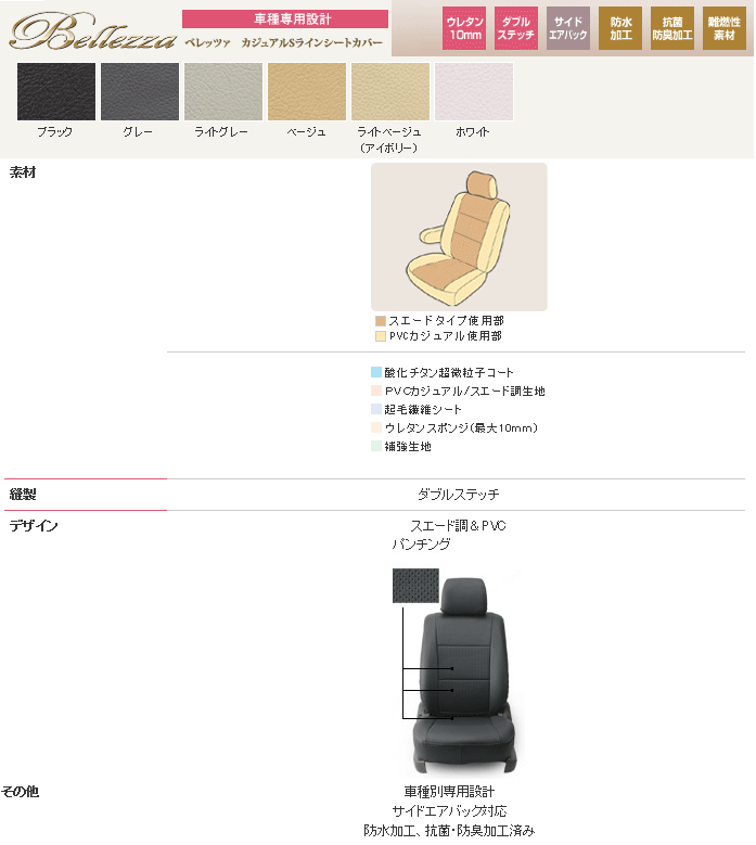 Bellezza シートカバー カジュアルSライン PVC&スエード調 トヨタ ノア 型式 ZRR80W/ZRR85W ZRR80G/ZRR85G 年式 H26/1-H29/6 定員 7人 グレード G ≪ 助手席背面ティッシュボックス有 サイドエアバック付可 ≫※福祉車不可